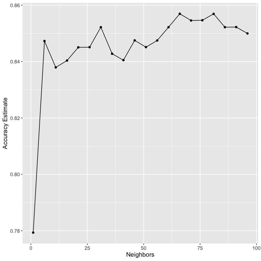 gridvals <-tibble(neighbors =seq(from =1, to =200, by =3))housing_results <- housing_wkflw |>tune_grid(resamples = housing_vfold, grid = gridvals) |>collect_metrics() |>filter(.metric =="rmse")# show only the row of minimum RMSPEhousing_min <- housing_results |>filter(mean ==min(mean))housing_min